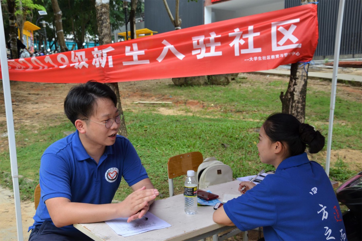 负责寝室接待的是永利集团青协。负责人周世宏谈到,全体工作人员并没有因为三亚多变的天气而缺席,依然坚持在自己的岗位上,为新生解惑,表达了对全体工作人员的感谢。最后,他对新生们也提出些建议,他认为,大学是走向社会的过渡期,在此期间,需培养自己的独立能力,从而得到更好的发展。