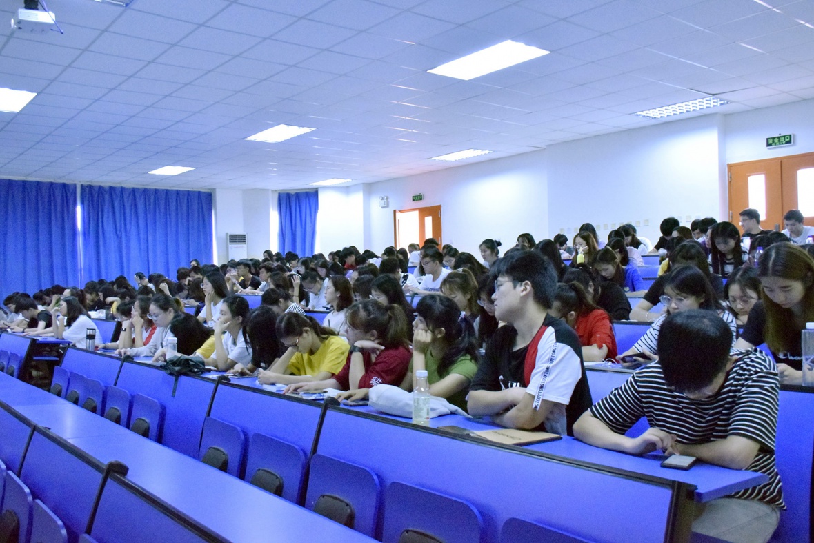 图为同学们正在认真听讲座