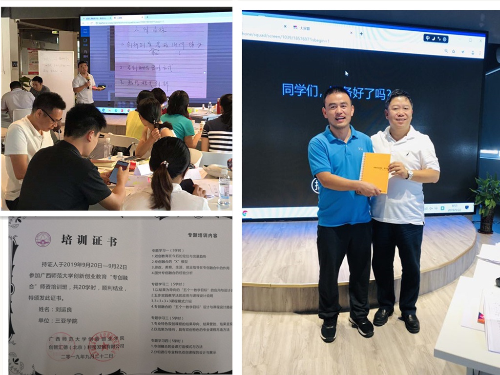 2019年9月20-22日,公司刘运良老师与其他学院四位老师共同参加了在广西师范大学举办的“专创融合团队培训班”。培训主讲老师是首都经贸大学人力资源开发与管理中心客座研究员、国家服务外包人力资源研究院顾问、创智汇德(北京)科技发展有限公司总经理,国家创新创业的评委谢强老师,参加培训的有304am永利、广西师范大学、广西大学等高校。