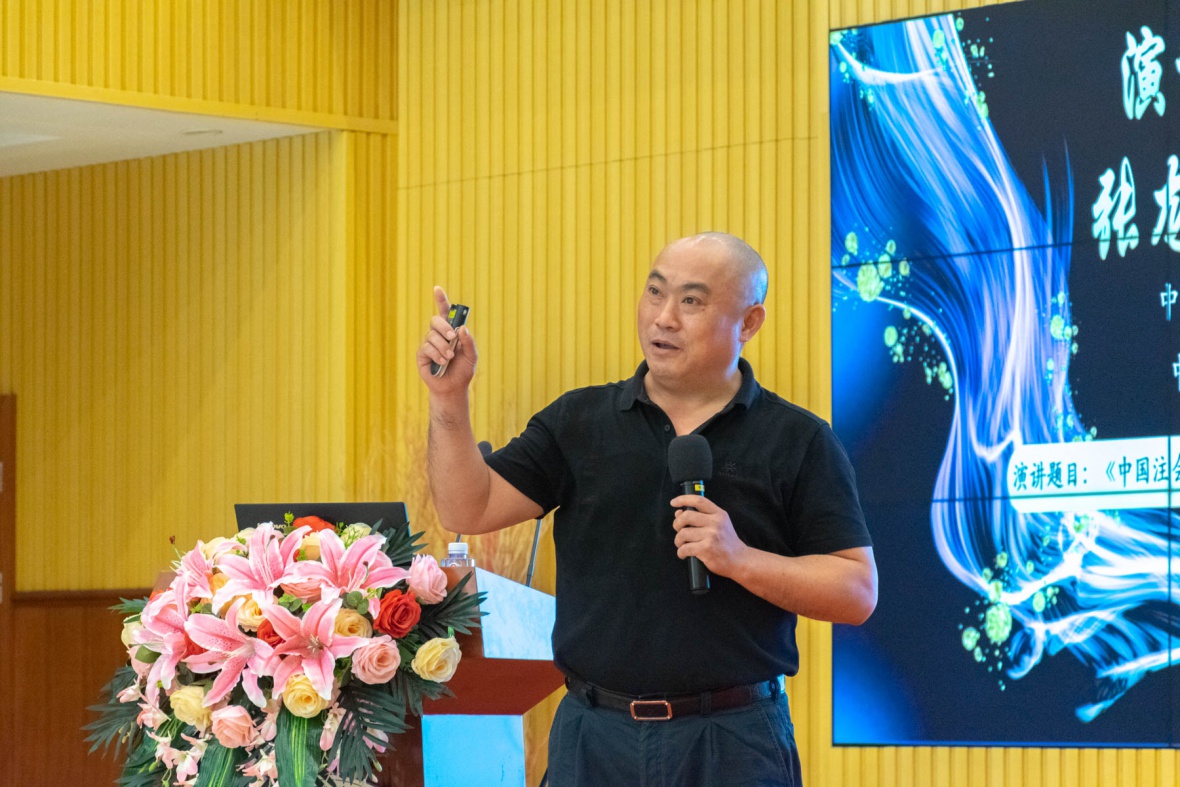 图为中国会计学会副会长、中南财经政法大学张龙平教授发表演讲