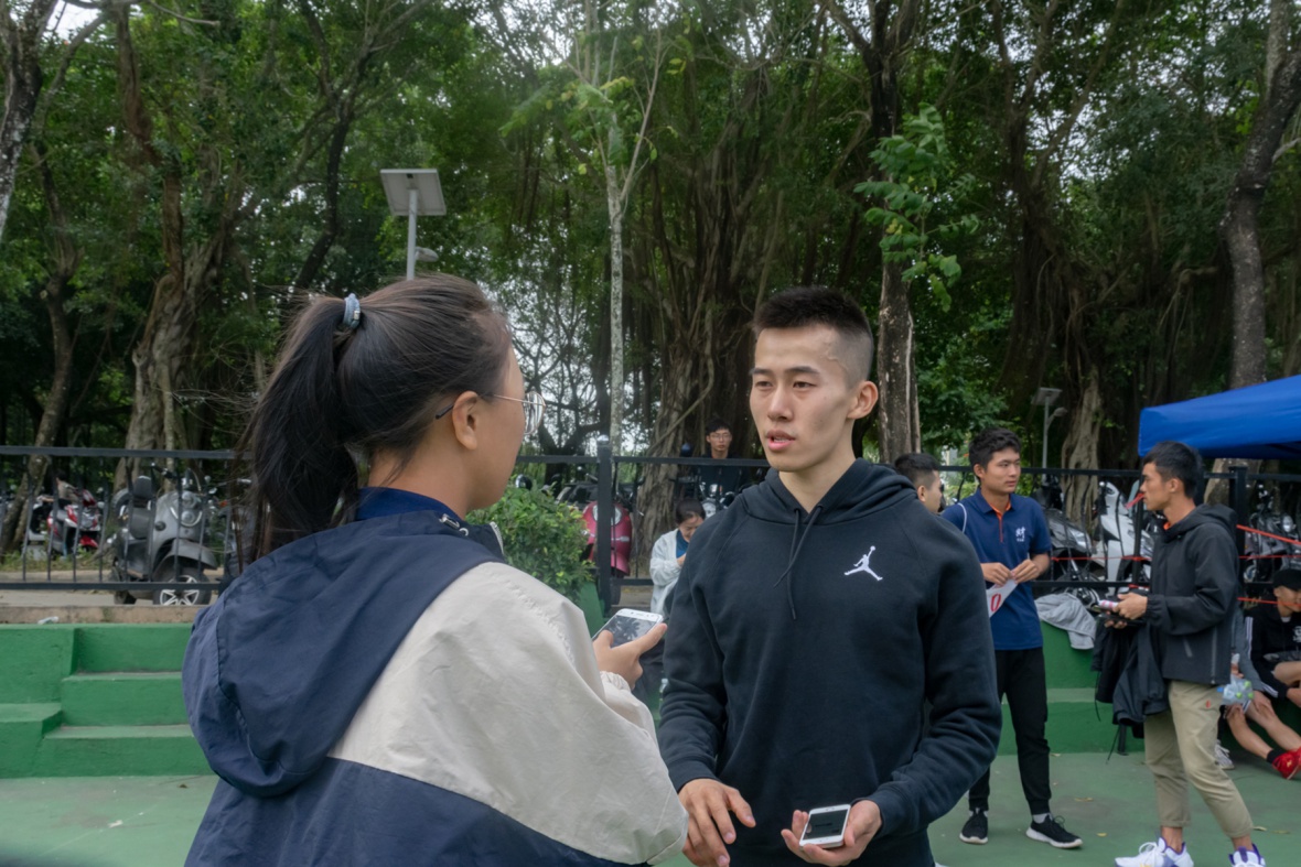 赛后,倪杰同学接受了财经团委的采访。当被问到觉得自己今天表现如何时,倪杰同学表示总体感觉不错,并对获得第二名感到非常高兴。倪杰同学也提到这次参赛的选手实力都很不错,给了他一些压力。在问到有什么运动经验可以与同学们分享时,倪杰同学提到平时的锻炼非常重要,要有锻炼的习惯,做足赛前的热身运动,这样才不会轻易受伤,也不会感到紧张。