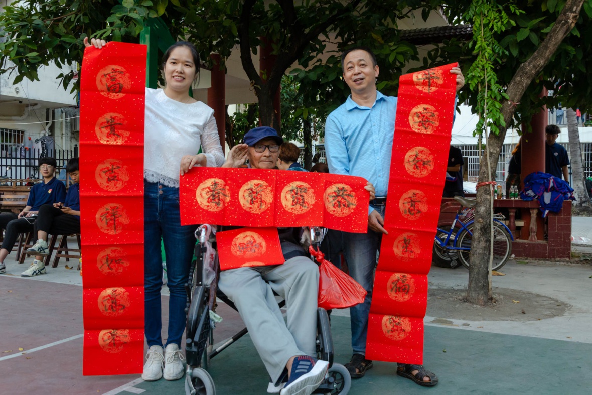 活动接近尾声,志愿者们给爷爷奶奶呈上亲手写的对联,并送上亲手包的热腾腾的饺子,祝愿他们在新的一年中身体健康、万事如意。也祝愿祖国在新的一年中不断前行,更加的繁荣昌盛。。
