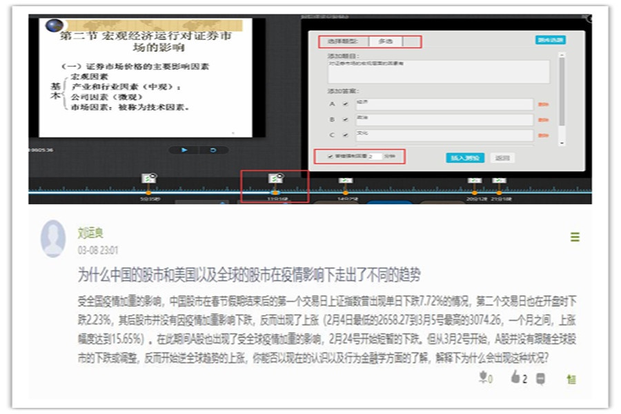根据教育部以及学校的要求,本学期的“三度”课程之一《证券投资理论与实务》课程采用多种教学方式,提升学习效果。