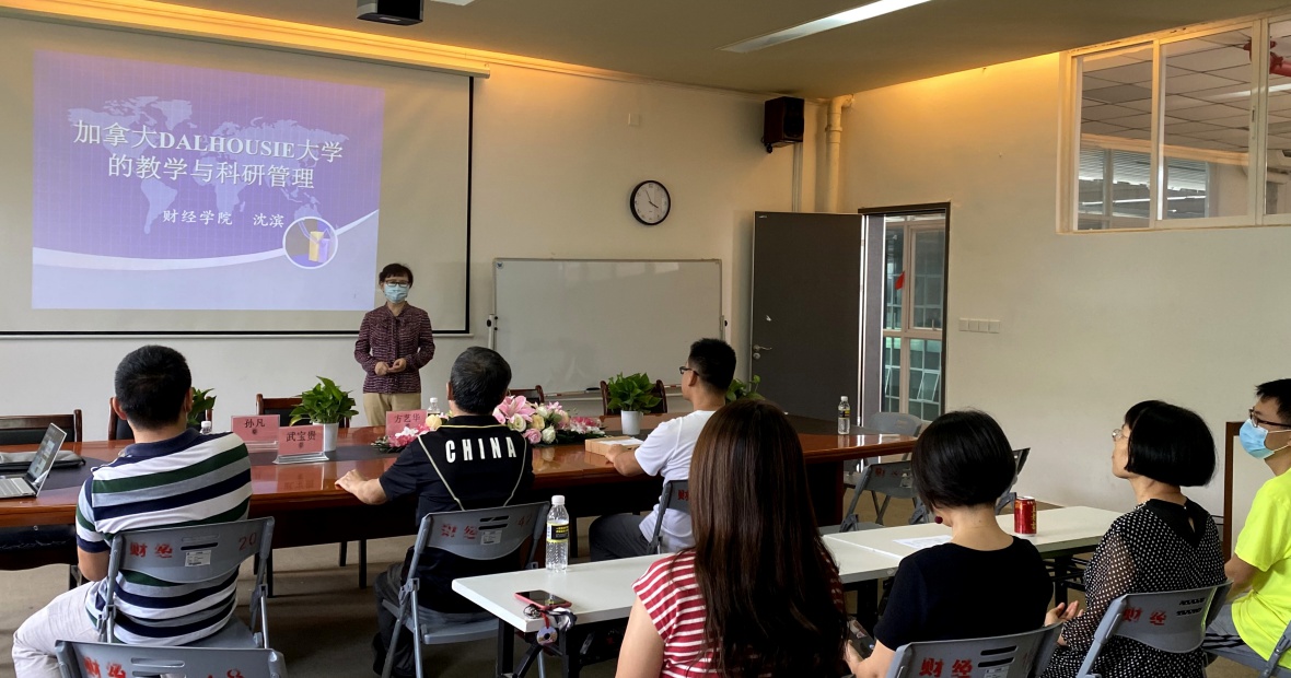 沈滨教授曾作为国家留学基金公派访问学者对该校进行过为期一年的学习和研究,根据访学期间的所见所闻,2020年6月24日,在本院会议室举行的专业学术交流活动上,以学术讲座的形式,对DALHOUSIE大学的教学与科研管理进行了较为全面的介绍和解读。