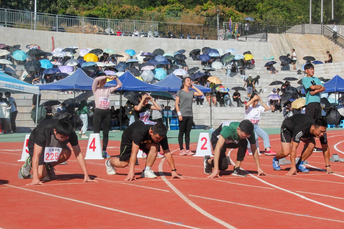 比赛即将开始,在一番热身活动后,来自各个学院的老师们已经做好了准备。在枪声响起的刹那,六位来自各个学院的老师们迈起了飞快的步伐,在极快的时间里出现出现在终点的前方。