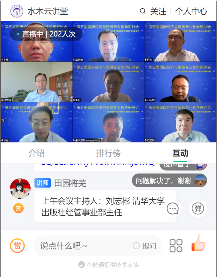 为了进一步加强高等学校国际经济与贸易专业的教学工作,提升教学、科研和团队建设水平,打造一流课程,永利集团武亚楠老师参加了由教育部高等学校经济与贸易类专业教学指导委员会指导、清华大学出版社主办的“2021年第五届国际经济与贸易专业教师研讨会暨新文科背景下国际经济与贸易专业创新教学研讨会”,由于受疫情影响原定于线下的会议转为线上,于8月4日召开。