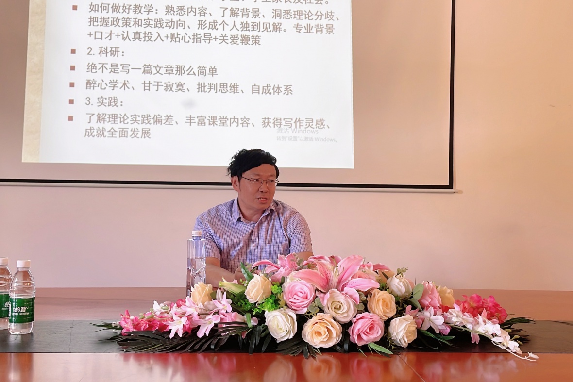 干胜道教授首先从高校教师教学、科研与实践的关系说起,他认为教学、科研与实践是高校教师的“三条腿”,教学是良心工程,要做好教学就要熟悉内容、了解背景、洞悉理论分歧、把握政策和实践动向、形成个人独到见解;做科研需要醉心学术、甘于寂寞、批判思维、自成体系;实践需要了解理论实践偏差、丰富课堂内容、获得写作灵感、成就全面发展。对于高校教师而言,这三者相辅相成,缺一不可。