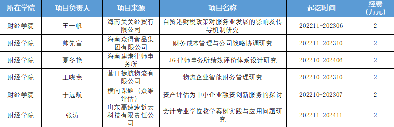4、获得横向企业联合研究项目共6项,项目经费合计共12万元。
