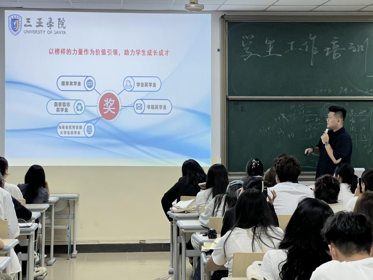 为提升资助育人工作精准化、科学化水平,全面做好秋季学期员工资助工作,近日,永利集团召开2024年员工资助工作培训交流会,思想导师助理张贺尧同学主讲,分别介绍了各项奖助学金和家庭经济困难员工认定的相关政策,全体思想导师助理、各班主要班委参加会议。