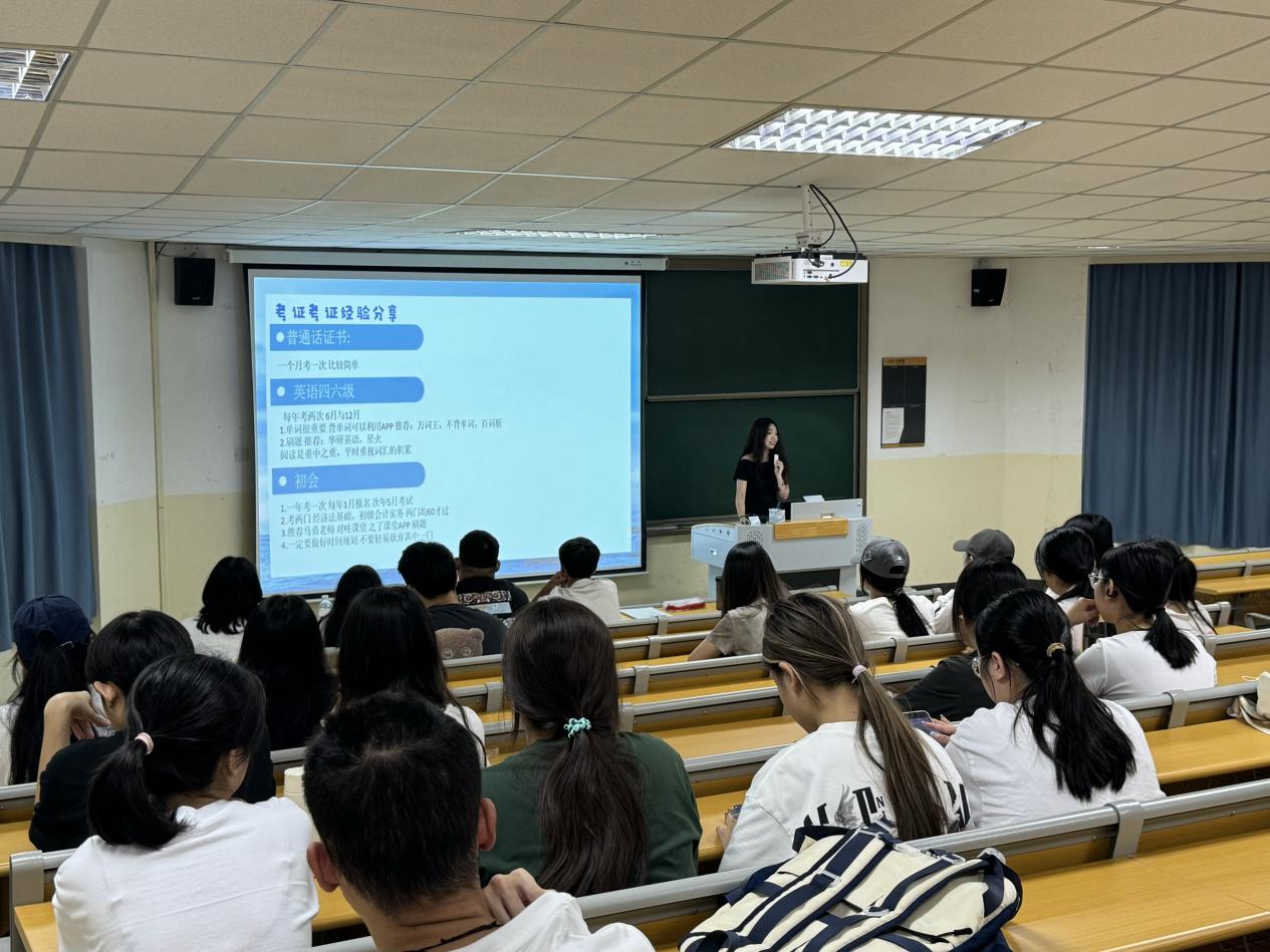 首先,她提到在学习心态上,我们要拒绝负能量;在学习方法上,紧跟学校进度,善用资源,要重视基础。关于竞赛方面,她提到要关注集团通知,实时了解各类竞赛的日程和安排。备赛之前,要考虑指导老师、成员组队,实现优势互补。此外,杨萌学姐也分享了其他考证考级的经验,以及参加社会实践活动、志愿服务活动、各类文体活动的经历等。她总结道,进入大学之后,我们需要培养自身的更应该是学习的能力。
