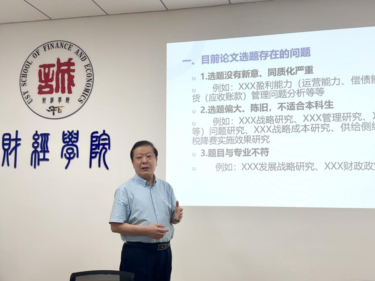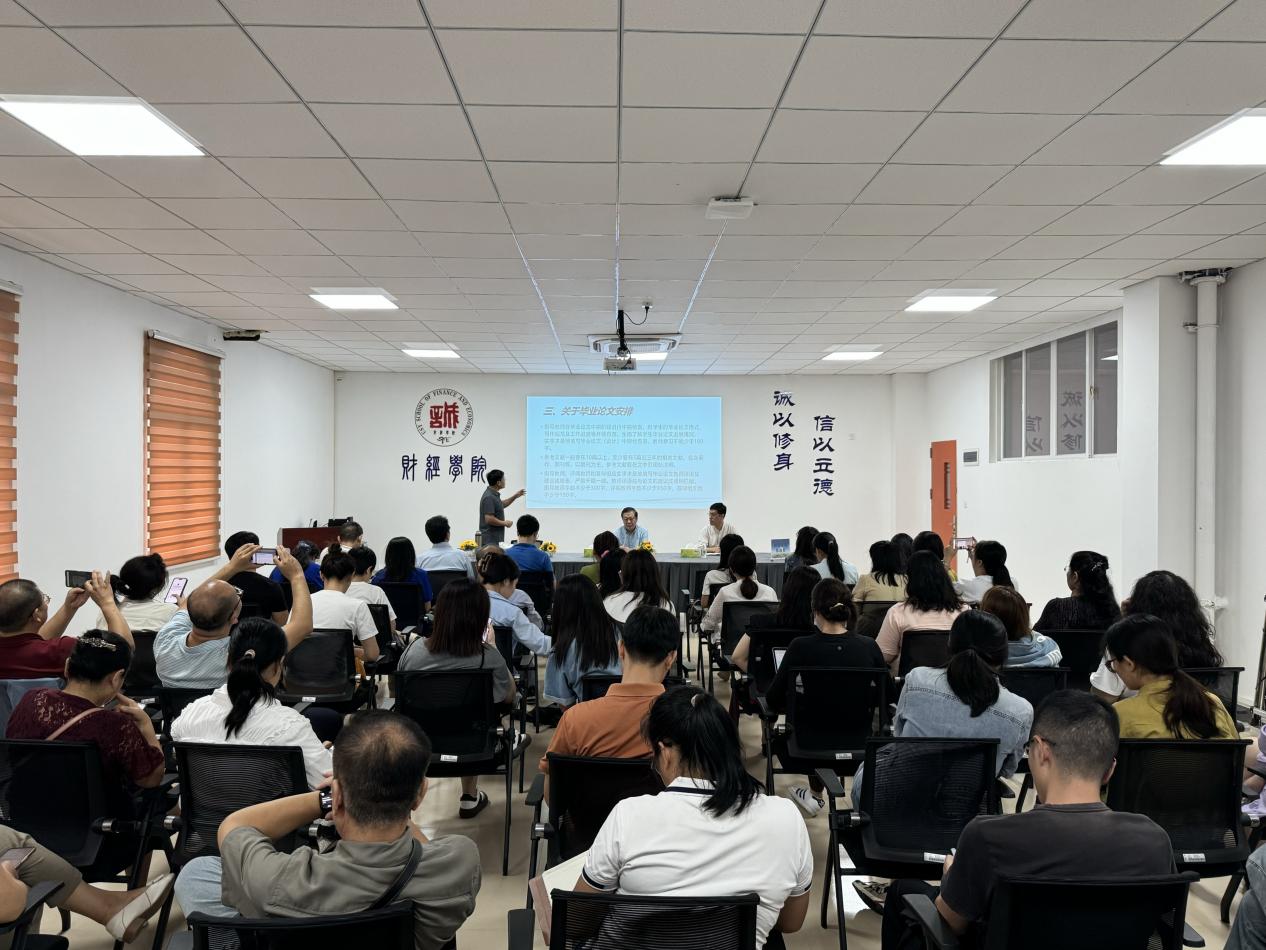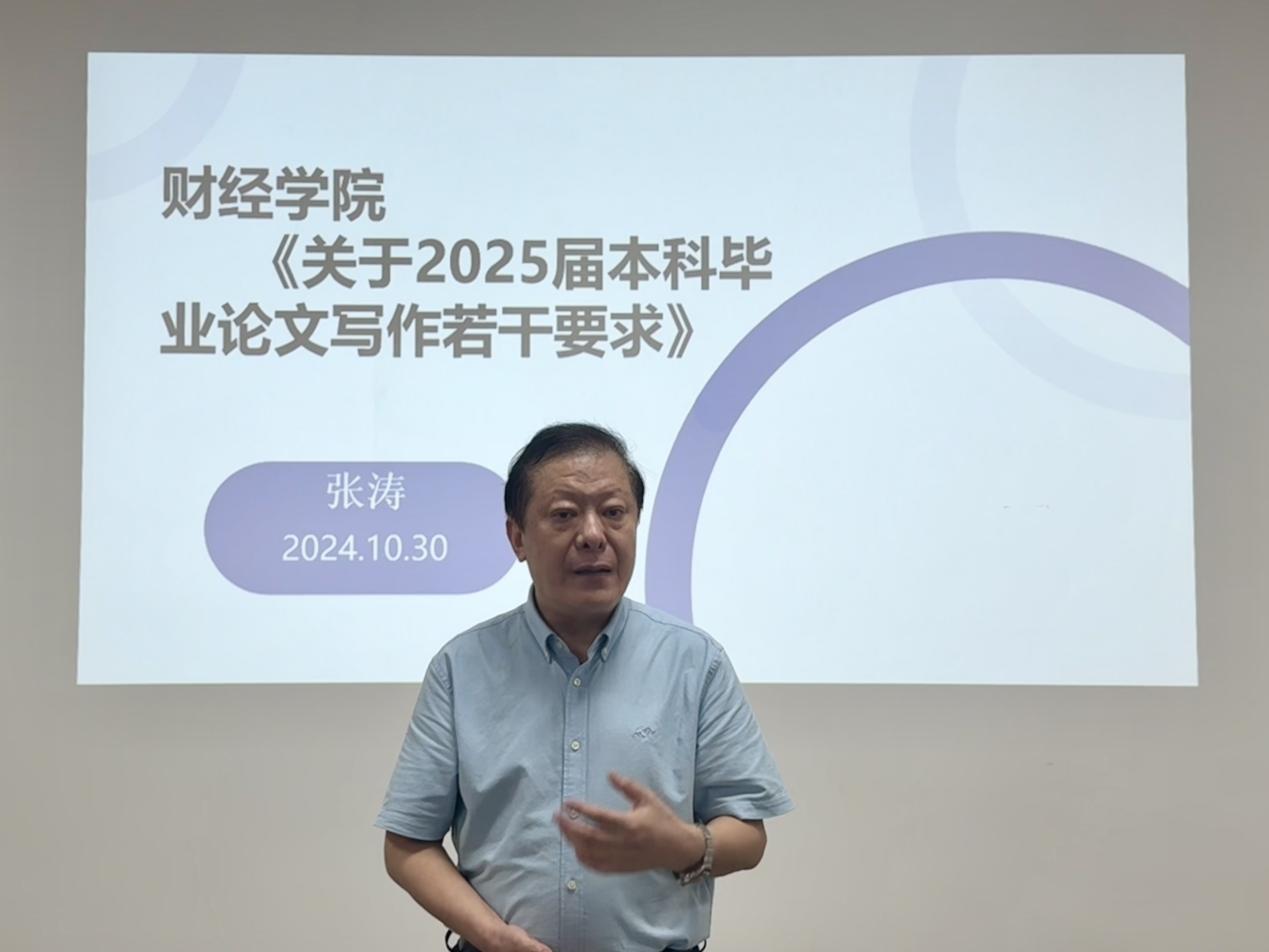 张涛经理以《关于2025届本科毕业论文写作若干要求》为题,为全院教师作了专题培训。张涛经理首先指出,目前论文选题存在诸多问题,论文选题要围绕员工熟悉的专业领域;选题要新,聚焦当前中国经济热点问题;题目宜小不宜大,要专而深,不要蜻蜓点水;以案例分析、调研报告等为主,不要选择纯理论性质题目;题目要规范,不要出现语法错误。