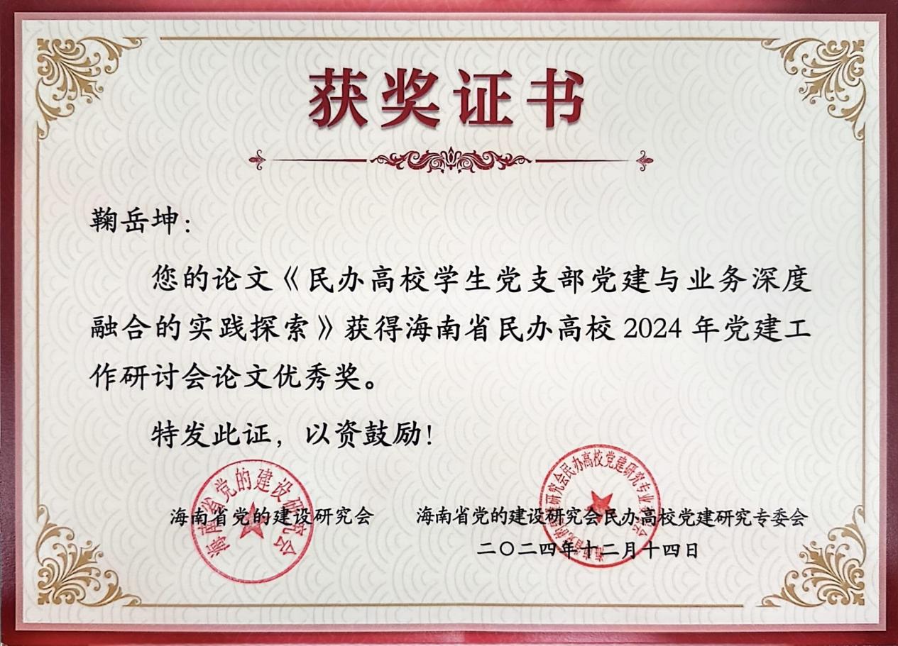 公司思想导师、员工党支部宣传委员鞠岳坤撰写的论文《民办高校员工党支部党建与业务深度融合的实践探索》获评研讨会优秀论文,鞠岳坤老师作为获奖论文作者参会。