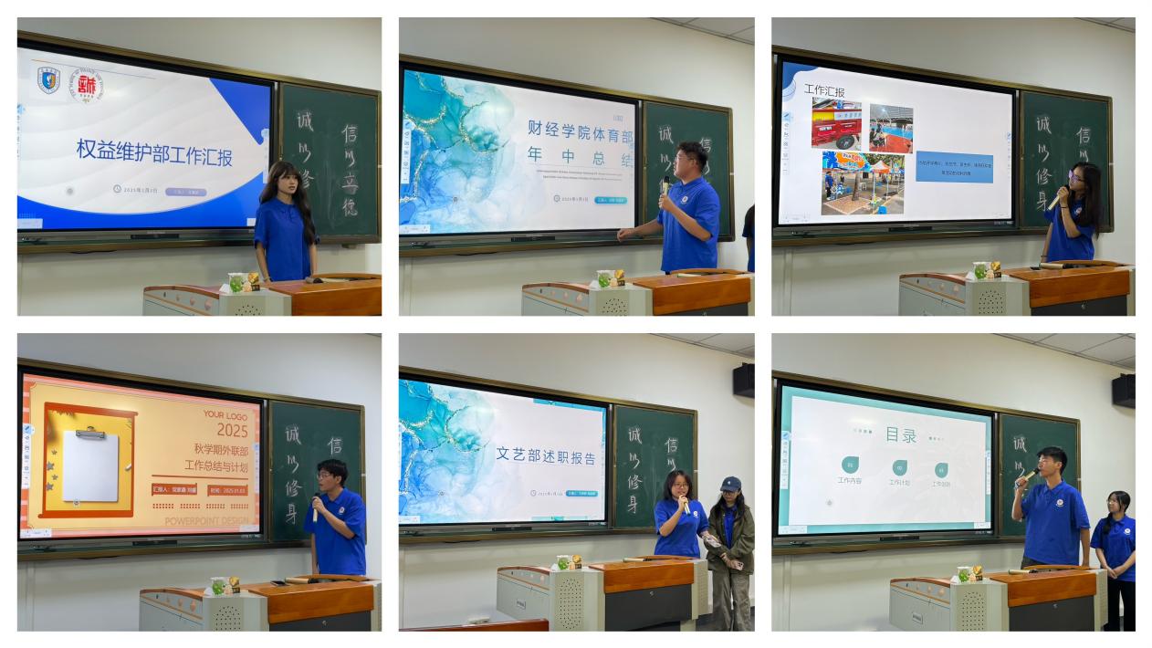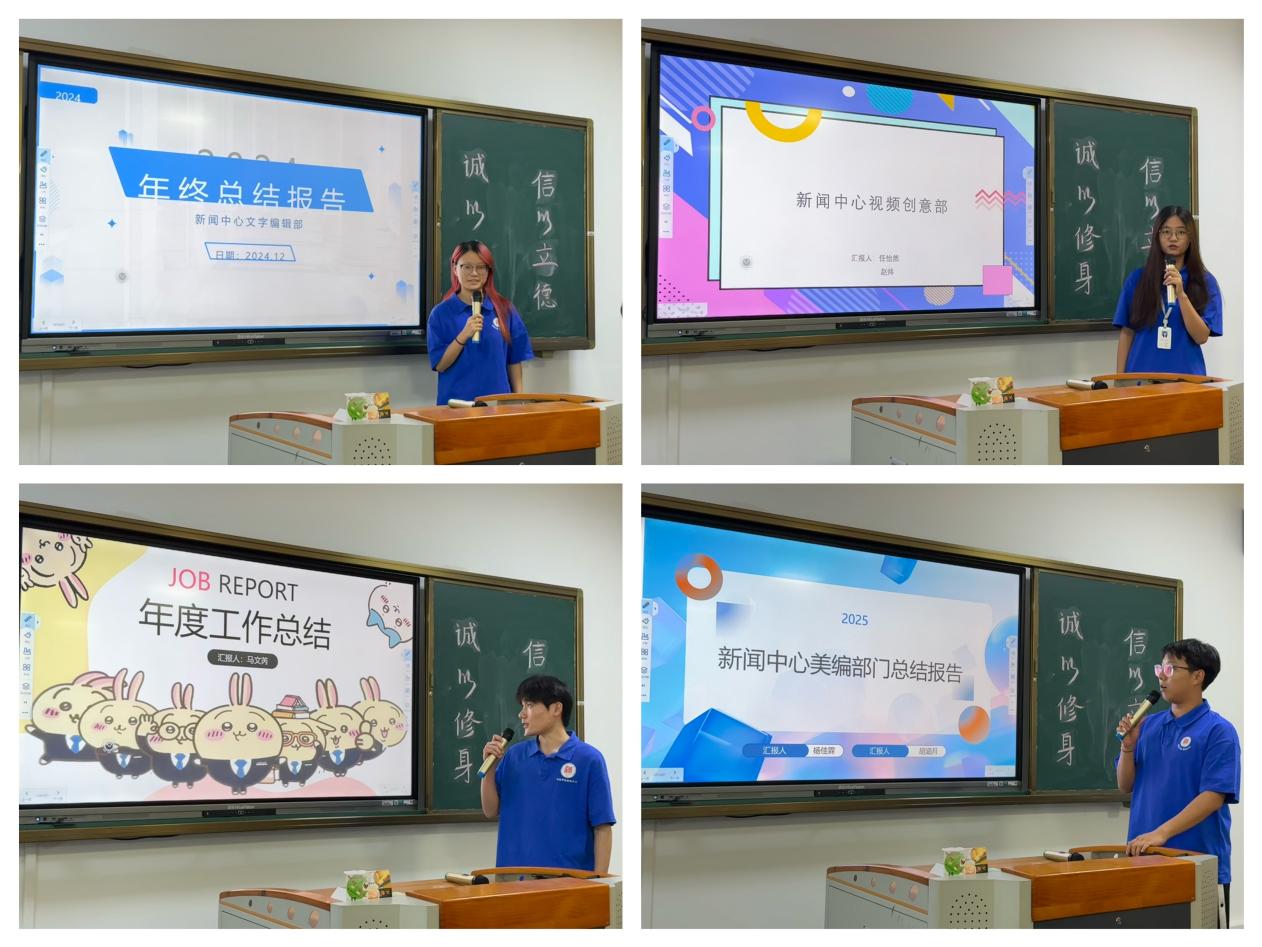 交流会上,团委(学)、员工会、新闻中心各部门部长先后登台,条分缕析地讲述本学期工作情况,展开细致入微的工作汇报。一份份用心雕琢的PPT,一行行承载心血的数据记录,一张张精彩纷呈的记忆影像......铭刻着各部门一路走来的拼搏足迹与成长蜕变。
