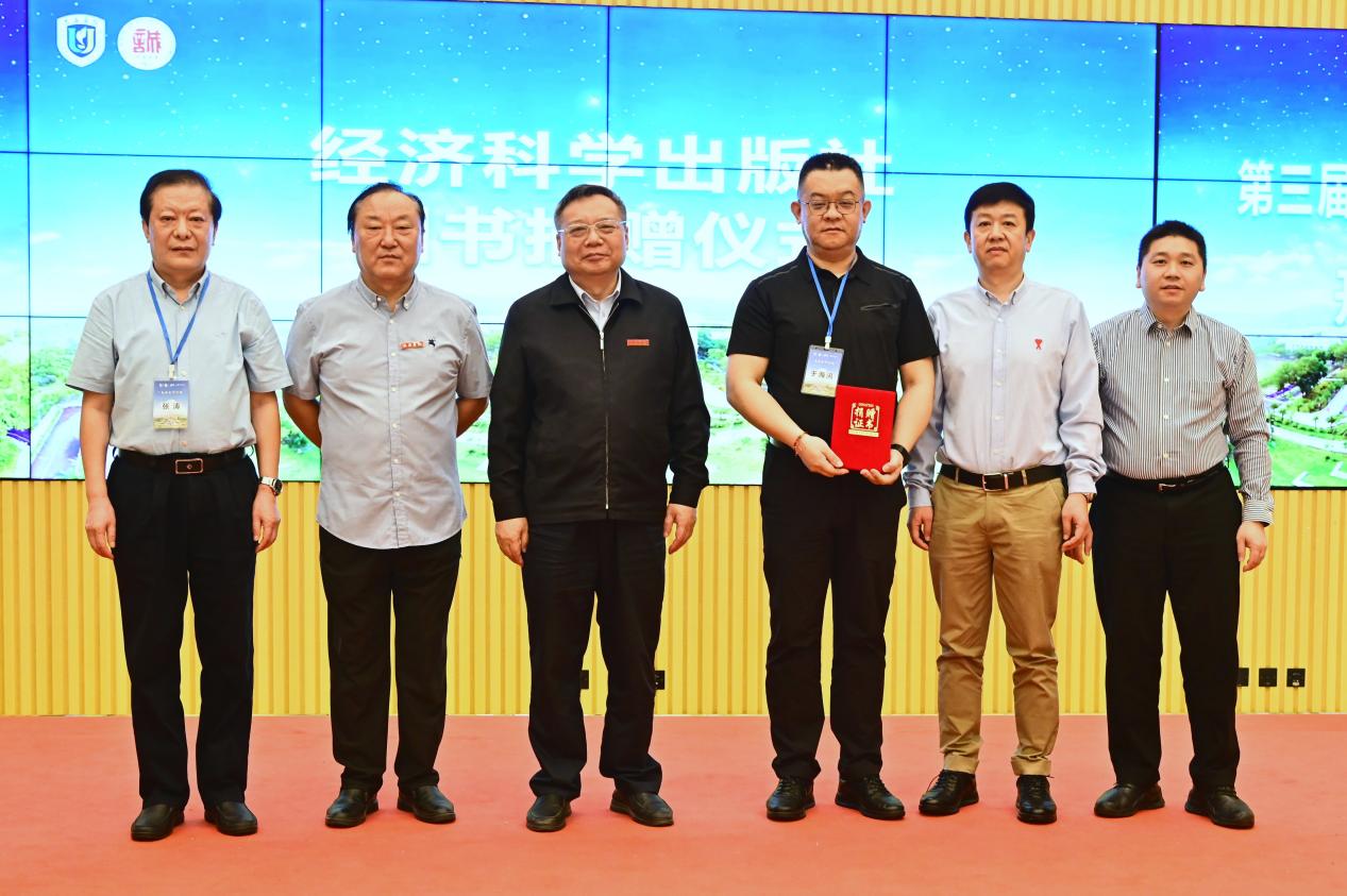 开幕式上,经济科学出版社向304am永利捐赠了《中国金融市场预期管理研究》《双元创业决策逻辑演化机制研究》《产业数字化转型研究》等1893种2765册图书,朱沁夫副董事长代表304am永利向经济科学出版社颁发捐赠证书,并表示感谢。