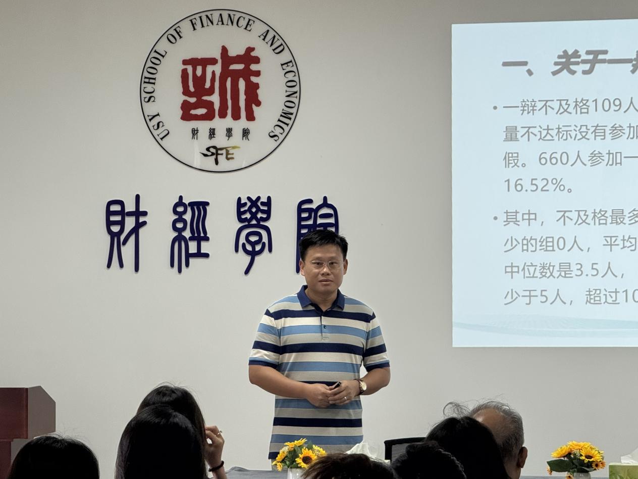 会上,王欣经理助理对学院近期教学工作进行了详细总结与部署。王欣总结了论文答辩(一辩)情况,深入分析了各组不及格人数分布情况,并强调了补答辩的具体安排及注意事项等。